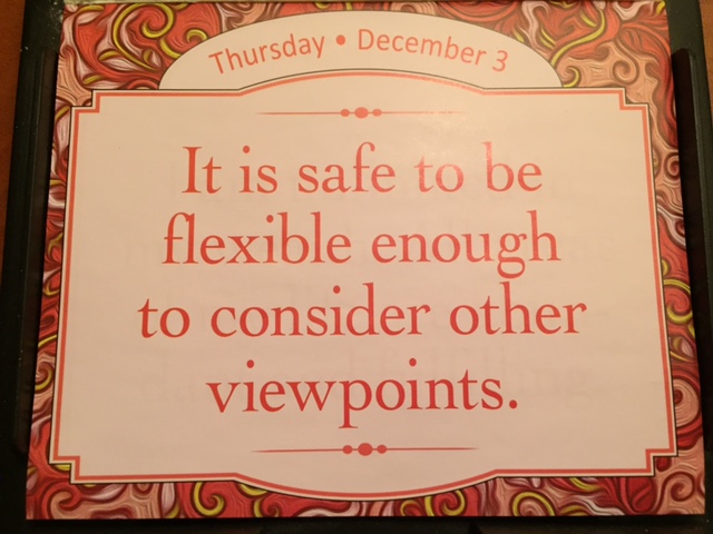 “It is safe to be flexible enough to consider other view points.” As I said I do not have Mike or Louise’s gift for brevity but let me wax a bit wordy on it being safe to be flexible.
