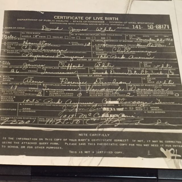 I began this incarnation on November 22, 1950. The two I chose to play the roles of my father and mother were James Clifford White and Alene Florence Davidson White. The city I chose for my birth was Chattanooga, Tennessee. I must have been fond of the song Dixie in a previous incarnation because like a line in the song says “In Dixieland where I was born in, early on a frosty mornin’…”