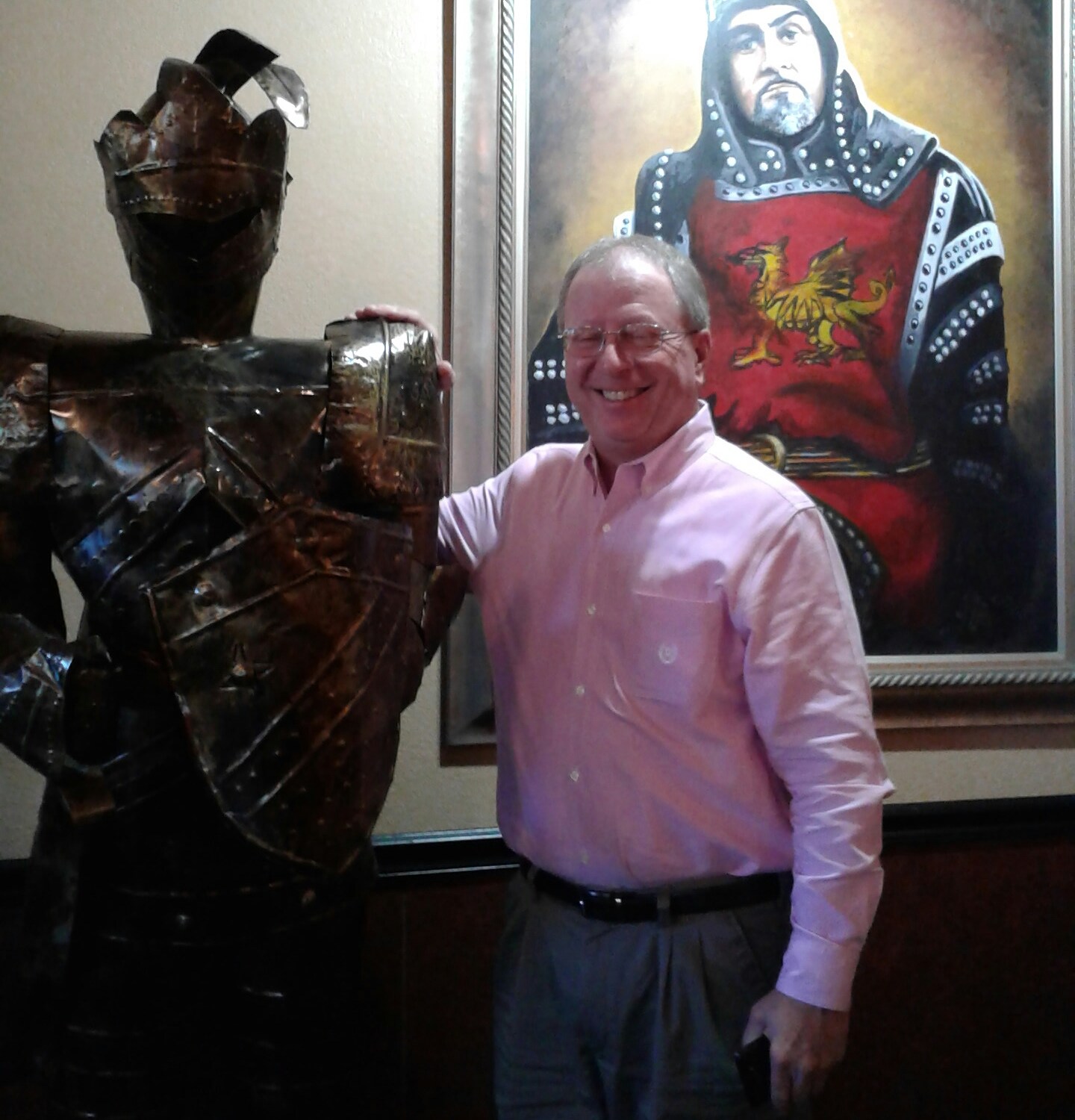 But the real shiny event of that dinner happened just a few moments latter as two ladies negotiated the tight space between the big long table and mine. The first lady was helping the second lady, an older lady with a walker. The walker was too wide to pass through so the older lady turned it side ways and pushed it through to the first lady. That left her the backs of the chairs of the people seated at the big table to hold on to with her right hand but nothing for her left hand. Not wishing to be presumptuous I raised my right arm flexing the muscle and holding it parallel above the table creating a hand rail for the lady if she chose to use it. One of the churchmen got up offering to help her but spying my arm she said, “No, I think I’ll use this man.” When she gripped my arm and felt the flexed muscle in my forearm she uttered a gleeful and almost flirty, “Oh my.” The church folks chuckled and that made both of our days, I think. And all I had to do was to lend a hand, actually in that case an arm.