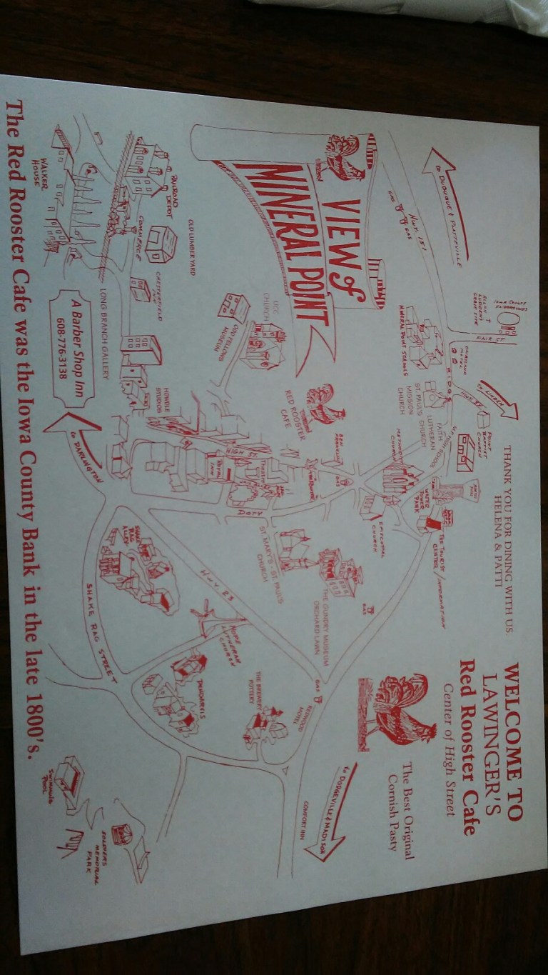 Staying at The Travelers Inn in Mineral Point, WI. Stop by and see me if you’re in the neighborhood especially, if your name is Mandy Moore. Just teasing we could meet for coffee or share a bite to eat at Pointers Cafe or The Red Rooster Cafe on High Street.