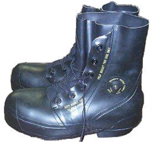 Mickey or Bunny Boots got their cute names from the G.I.s who loved the way they kept their feet toasty but thought the large size of the boots made their feet resemble Mickey Mouse or a big bunny. The technology behind the boots was developed because of the large number of frostbitten foot cases during the Korean War. The boots are made mostly of rubber with multiple layers of felt that is encapsulated in rubber creating a compartment in which the foot will sweat but not become cold. The instruction card with the government issue boots recommends that the boots be worn with only wool boot socks, cushion soled, also government issue. The same ones we were issued to wear with our combat boots and also Vietnam jungle boots. The jungle boots had holes with grommets just above the treaded soles to allow the water to drain out. Mickey Boots are designed that if you step in icy water over the tops for your feet to warm the water. They do state on the instruction card in the minus forty rated white ones to take your socks off and to wring them free of as much water as you can and then put them back on and then to put your Bunny Bootsback on. The the boots will do their magic to keep your feet warm cold wet socks becoming warm wt socks in no time at all.