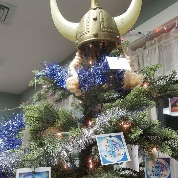 There are so many people for whom the holidays are a sad time because of memories of loved and lost family and friends. I do not believe in loss. My first child, my daughter Emily, made her entry on this stage in July of 1980 and her exit in the same month thirty two years later. The play that was her life was a joy to be a part of and share. Her cousin posted a picture of a Christmas Tree on Social Media yesterday that had a Viking helmet complete with horns and blond braids atop the tree. Her comment with the picture read, “Guess who is the angel atop our tree.” When I saw it my heart answered that question – Our Angel Emily. A year after Emily took her final bow, at a family reunion in Murray, Kentucky per her final wishes we held a Viking Funeral for her. A year ago yesterday I posted for my daily blog that day a chapter from the book I wrote about her, The Little Girl Who Sang Her Song To Anyone Who Came Along, the chapter called Emily’s Viking Funeral.