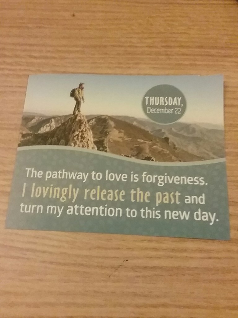 Our creator, our Divine and eternal parent loves us and does not say, “Clean up your room. Put your things away.” to punish us but because He/She knows an uncluttered life makes it easier for us to concentrate on what we really want. I saw someone posted on social media, “I want it all.” No, you don’t. None of us does. Many of us are just too distracted by the clutter in our lives to decide what we really want. You can have it all but wouldn’t you really enjoy it more one thing, one dream at a time. I posted the picture of a recent page of my Louise Hay “You Can Do It” Daily Calendar because putting away the past is a very important part of being able to really enjoy today.