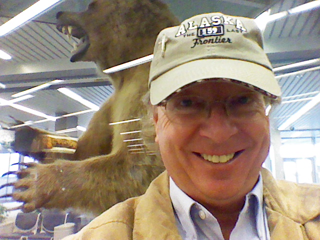 Third picture took place on a wonderful work assignment that I had in Kenai, Alaska for two summer months in 2012. While there I flew twice to Anchorage from Kenai for Operator Qualification Evaluations. In the little airport in Kenai was a large standing stuffed grizzly much like the one in the two above pictures. I took a selfie with the bear over my shoulder hoping it would look alive and fearsome and I brave and nonchalant. Well, the bear looks cool. I attach the picture for your consideration. Shortly after this picture was taken my beloved daughter, Emily, was diagnosed with liver cancer that had metastasized from her adrenal glan. She died quickly after the tumor was biopsied and confirmed cancerous. In eighteen days I will again begin daily to post an episode each day in month of Emily (More widely known as July) from the book I wrote about Emily called, “Emily – The Little Girl Who Sang Her Song To Anyone Who Came Alone.”
