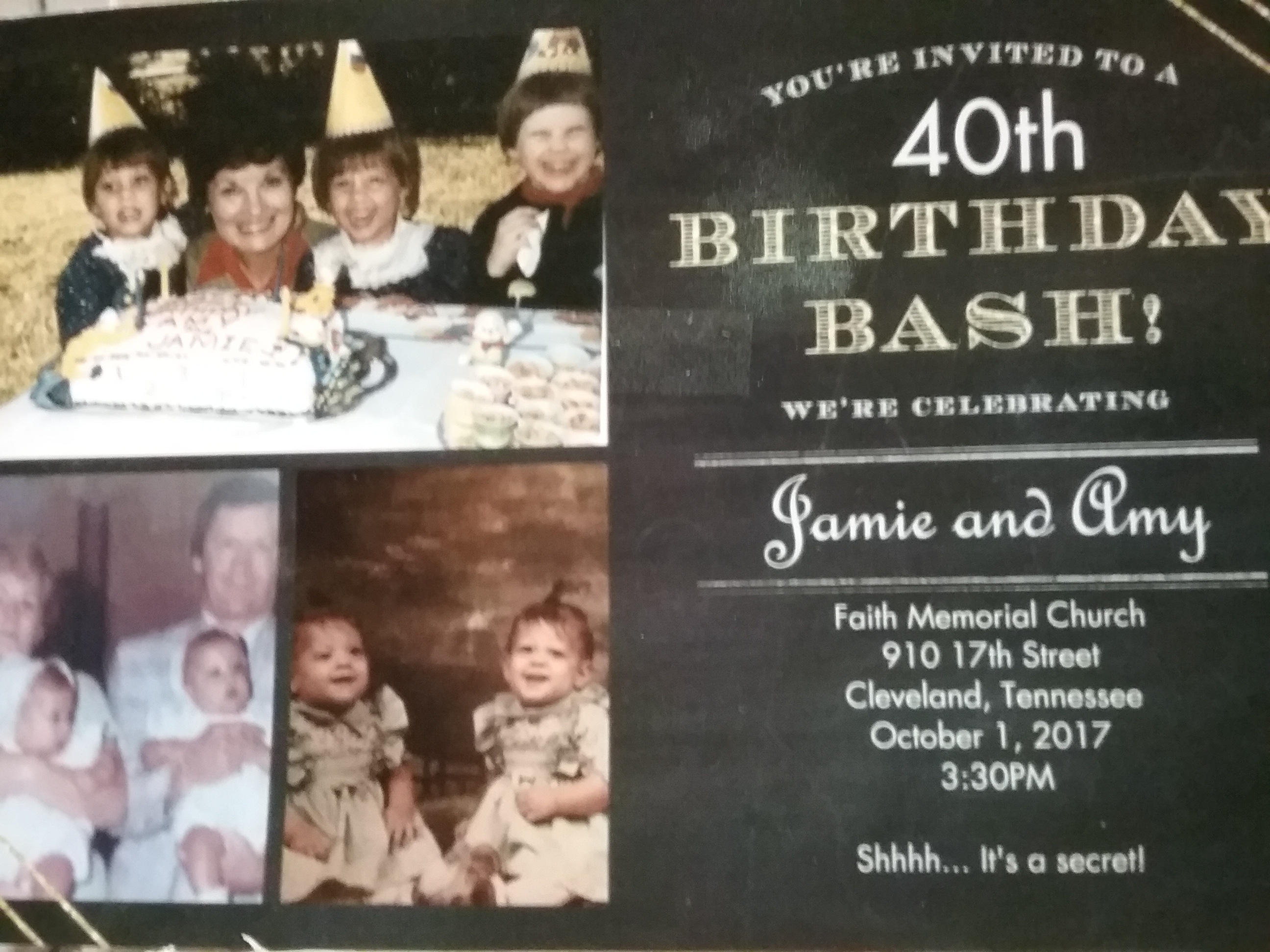 Today’s picture is the birthday party announcement that I mentioned receiving. The girls’ mom and dad are not pictured but friends who loved them too. Their beloved daddy Raymond passed when they were quite young but they had time enough to thrill his heart and he theirs. I am confident that he has been watching over them throughout their lives and will be a smiling unseen guest at their fortieth birthday bash. Party hardy girl I know daddy would want you to and will be shouting for joy on the happy occasion thrilled that his girls are having yet another happy birthday. Their sweet mama, many others will be as well, and me too.