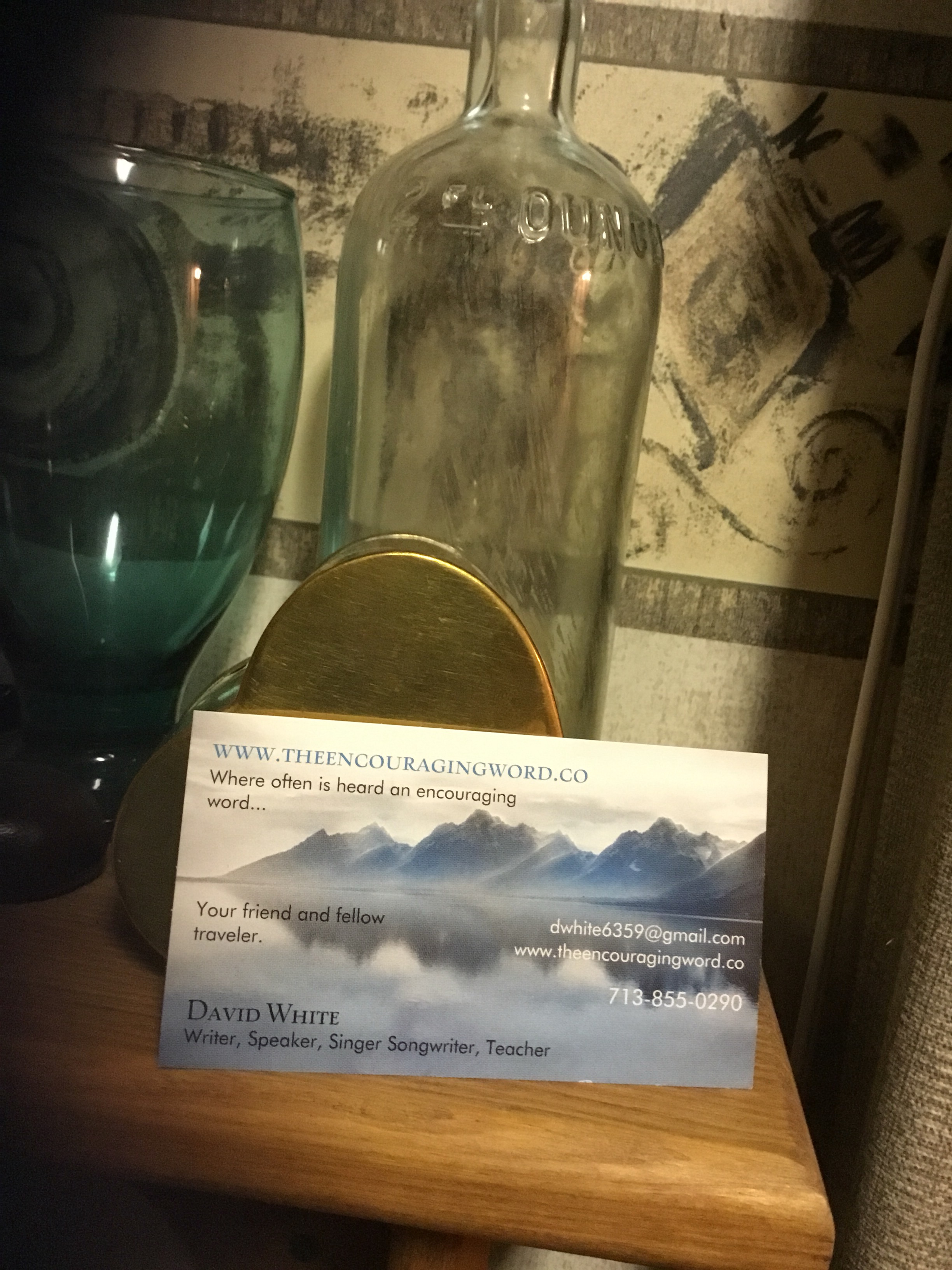 Right in the sticky middle of the way that I self-describe is “Singer.” After 800 blogs I really am beginning to think of myself as quite a writer – I hope you will come to think so as well. But I still do not think of myself as much of a singer hence if you notice I even typed Singer Songwriter on the card though so far in my journey I am more of a poet than a song writer per say. I hope to get around to that later, but in order to help myself to become and to think of myself as a better singer my plan is simple. Writing and posting every day has I think made me a better writer and helped me to see myself as that so I propose to record at least one song a day and share them with someone. Not always in this blog but at least in a text to a friend or several. If you would be interested in an encouraging song, sung just for you daily and to anyone else interested, just email me your email address and I will email you a link to a song each day. Or I could text the link to your phone if you have a smart phone and provide the phone number. No fee, not even a love offering requested or allowed and I promise not to share your email address or phone number with advertisers or salesmen or to try to sell you anything myself.