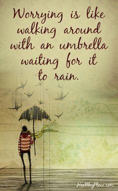 Many years ago I heard someone say, “You need to take the word “can’t” out of your dictionary – “Can’t never could do anything.” But I tried and I failed. Good for you, try again. Try, try, try, but even more importantly think, think, think. It is always possible to think a better thought. In the wonderful recently released movie Wonder, a little boy with a face deformity starts school for the first time in fifth grade. His mother played by Julia Roberts has home schooled him up to that point. She decides that it is time that he put his face out in the real world. As he walks in to the school building she prays out loud, “Oh, God, make them be nice to him.” But she had armed him with more than a prayer. As he meets the stares and the side steps of the children he says to the movie watchers, “My mom always told me when you don’t like where you are think of where you would like to be.” And we get to see his thoughts and he is all suited up in complete astronaut space suit and being high-fived by everyone as he walks into the school and down the hall. Before the movie is over that thought becomes Auggie Pullman’s reality. Or as one of my favorite writers, Mike Dooley says time and time again, “Thoughts become things. Choose the good one.” Today’s picture is a great quote about worrying but it is also true of all negative thoughts that they are like walking around with an open umbrella waiting for it to rain. And whether or not that is bad luck in doors it is bad business everywhere unless it is really raining.