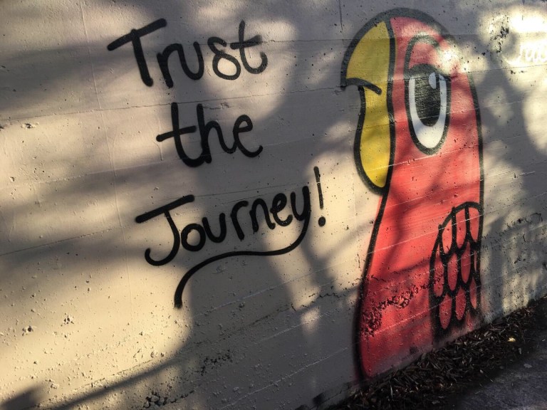 Because as the Apostle Paul or his ghost writer (pun intended) put it, “We see as through a glass darkly” sometimes we just need to trust our travel planner and guide – Trust the Journey, as the parrot in the cool graffiti picture says. Trust a parrot to know color and song and the journey to know just where to lead you for the optimum in fun and adventure.