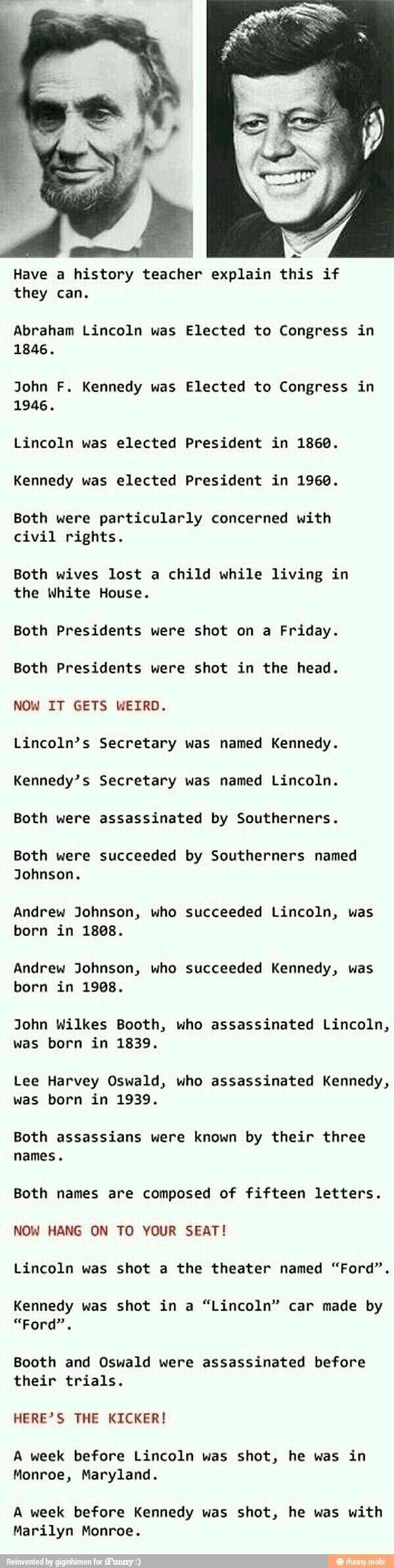 Their pictures with so many striking similarities stirs the imagination, but then no other two Presidents quite entertain the true history buff’s fascination as these two do. I do love a good rhyme. John F. Kennedy was shot and killed on on my thirteenth birthday. Perhaps in a pervious life that was also the case of another little boy or girl in Abraham Lincoln’s time. You actually take this past lives thing seriously, don’t you, Dave? Yes, I do. And talking to one’s self is not necessarily a sign of insanity nor having an open mind to differing opinions and ideas. I am relatively new at it, being a long time “true believer” you know one of those religious folks that believes all truth is contained in a single book, scroll, piece of parchment, or person. But no more, I am completely open to anything new or old that the Universe wants to show me.