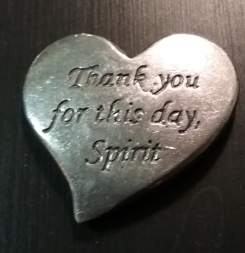 Or as the two sided heart shaped talisman that I carry in my pocket says so succinctly, “Thank you for this day, Spirit – I am Holy, I am Whole.” And so are each of us my friends, every day in every way. Accept no substitutes and entertain no more of ego’s lies.