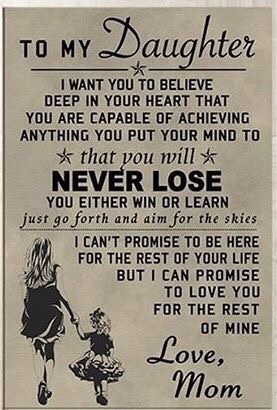 I love this Pinterest Pic and just had to download it so I could try to write another blog about happy I am that I was loved by a daughter. I was only permitted to have one daughter and she for only thirty-two years but my Emily was a peach and no dad could have every wanted or had a sweeter more loving daughter. People are always saying, “You must really miss her” and I know they mean well and would probably not understand the answer that I most want to give, them, “How can I, my heart is and will always be so full of her. She gave me way more and taught me way more than I was ever able to give or to teach her. Miss her, hardly, I celebrate every moment of her life that I got to share and I am sure everyone does who was privileged to know her.” I loved her and wrote poems saying so to her before she was ever born. It was my fondest wish that she never know a moment in her life that she ever felt unloved. But then I am sure like all of us who struggle with loving ourselves, warts and all, that she did. But I hope those moments were few and short lived. She left a legacy of love and caring which causes me to believe that her life, even as short as it was, was still a life full of love.