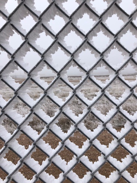A friend sent me a picture that her sister took off her front porch complaining that the wind was making her icicles grow crooked. Isn’t that just like most of us to allow just a little change in the wind or weather to make us crabby, cranky, and cantankerous. Now I have met the sister and would be careful saying that to her face. Ha! But life is so beautiful even in its frozen winter splendor and we should appreciate it. Where I am working, near Cheyenne, Wyoming, I have been surprised that in the almost three months that I have been here that we have yet to get over an inch of snow at a time and usually just a trace if any. But we have on several occasions had fog frost that covers the grass, trees, and tumbleweeds with a beautiful white frosting. In the sunlight it is breathtaking.