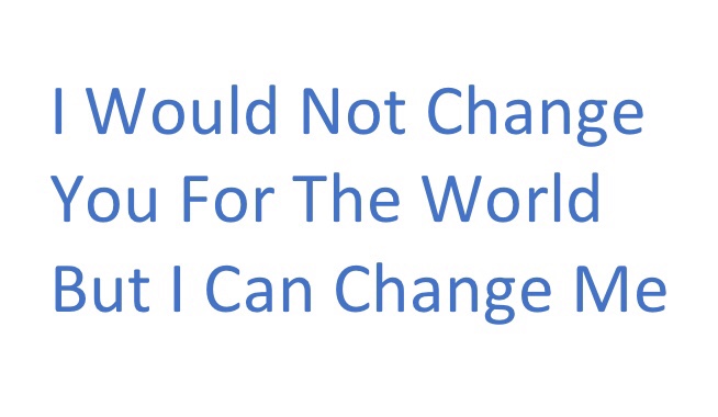 We should always be thinking about a change and not changing something about somebody else. Even wishing to, sends them the wrong message, that we are not happy with them just the way they are. The only person we can and have a right to change is ourselves and it is as easy as thinking a new thought and taking one little baby step in a new direction.