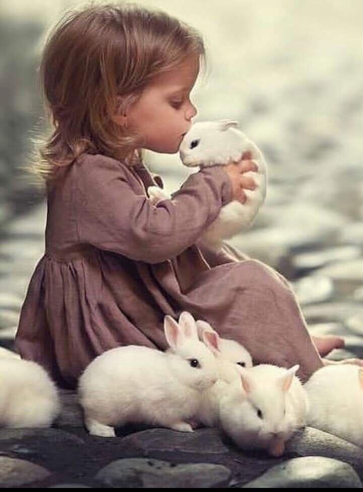 I love today’s picture of a little girl worshipping a precious pretty little furry bunny with a kiss as if she sees in it and in every little one of them way more than cuteness and cuddliness but that they are sublime and divine as is she, we. God is all in all – the Universe. Holy, holy, holy, Lord God Almighty.