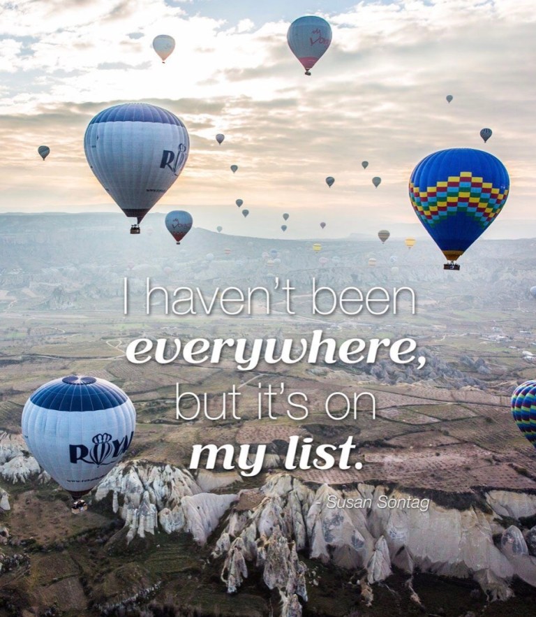 It is always especially exciting to me even thinking about a road trip. Growing up we did not get to travel very far from my home town of Chattanooga, Tennessee, or very often anyway. The songs “I’m A Traveling Man” and “Ramblin’ Man” have always appealed to me. I suppose I must have gotten a large dose of the wanderlust just before this go round. All I know is that it thrills my soul to travel. Carol King in her song “So Far Away” moans, “I sure hope the road don’t come to own me” to which I, myself, reply, “Too late for that.” For the last seven and a half years I have drug my little house on wheels across Wyoming, Colorado, Nebraska, Iowa, Illinois, Indiana, Kentucky, Tennessee, Alabama, Wisconsin, Minnesota, North Dakota, Missouri, Kansas, Oklahoma, and Texas. I plan to add Louisiana to that list taking it back to Texas this time and who know where from there. In my travels for the military, work, and play I have to date been in all fifty U.S. states, eleven foreign countries including five different provinces in beautiful Canada. I hope to see more before this journey is over and a larger portion of many of those places I have already been in. As the picture says, “Everywhere is on my list.”