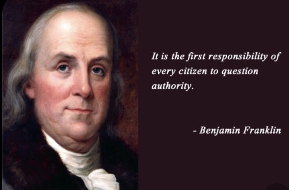 What makes democracy work is its deep-seated distrust of power in the hands of one or a few. Benjamin Franklin said it best in his quote below. And we are called not to be followers, subjects, slaves to the opinions of one or even a few but citizens.