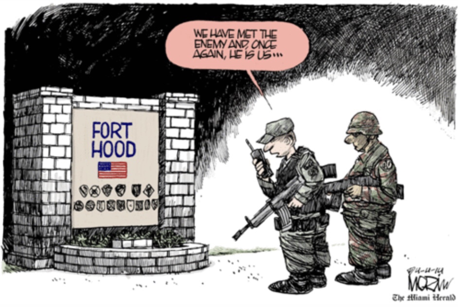 Before we drive this thing right off a cliff or into the ocean we need to stop yelling “My way or the highway” and start listening to one another and figure out who our true friends are and as well our one and only enemy. Pogo whom I have quoted often and will probably continue to says, “We have met the enemy and he is us.” A slightly paraphrased version appears in the below more recent editorial page cartoon.