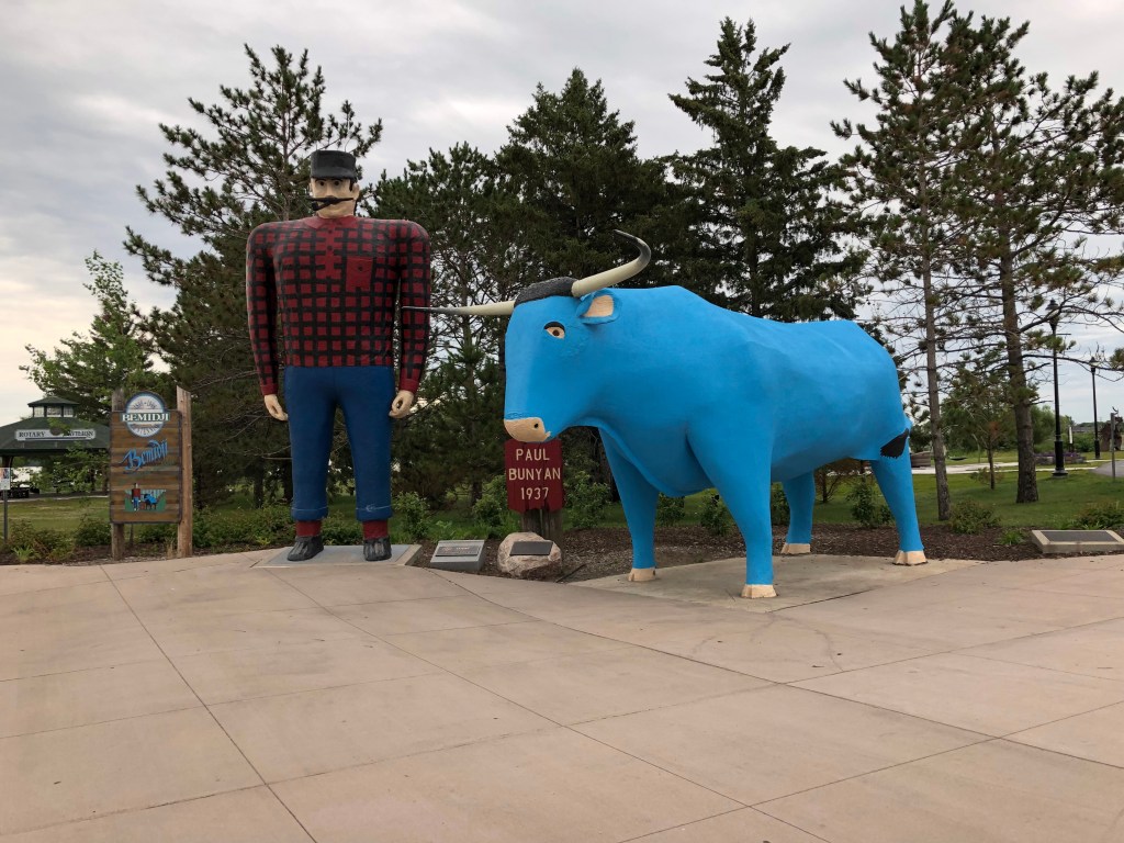 Even in this brief version any story about Paul Bunyan and Babe the Blue Ox is quite a tall tale. Two years ago I was glad and grateful to land a six month’s work assignment in Bemidji, Minnesota, home town of the two lumberjack heroes. At the edge on a beautiful park on the southern edge of Lake Bemidji, near the visitor’s center stand the two statues pictured today.