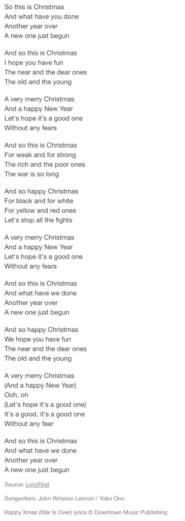 I was still a youth when John Lennon first release his Happy Xmas (No More War) song: