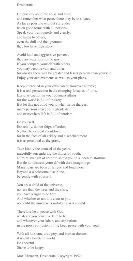(Desiderata may have been copyrighted in 1952, but I believe it was first written in 1927.)
