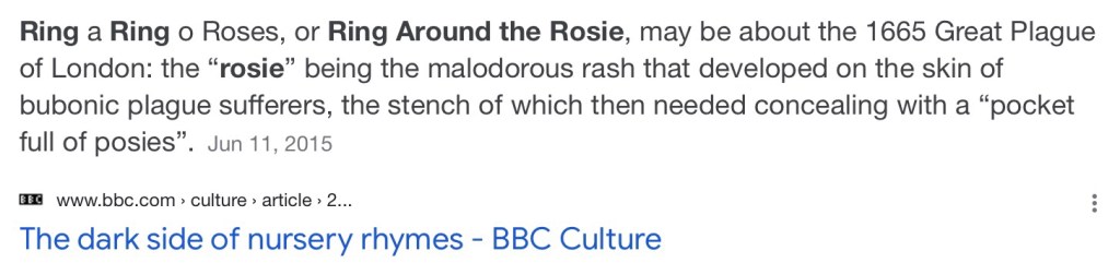 Some of the origin stories behind the children’s songs are quite telling themselves. It is said that Ring Around the Rosie came out of the Great Plague of London.