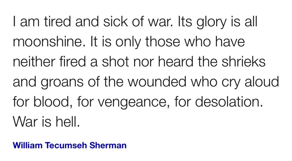 One of my early boyhood heroes, Jesus, taught love and truth and that real lasting change only comes through non-violence. The warmongers and war profiteers would have us believe otherwise. Real forgiveness of ourselves and others is the only cure for broken hearts and relationships, revenge and “getting even” only fan a different and destruct fire not the “God spark” within us but a hell like the American Civil War General, infamous for burning a sixty mile wide swath across the south from Atlanta to the sea, said: