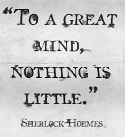 We have heard it used as an insult when some one points out the obvious detail, “Way to go, Sherlock.” But as one of my favorite, if too long to list it all, adages goes, often the war is lost over one small overlooked detail, as relatively small as a single horseshoe nail. Or as Sherlock himself put it: