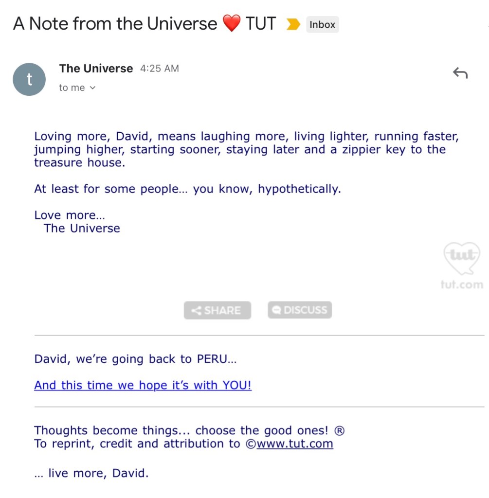 More guns, bigger aircraft carriers, more nukes (An eye for and eye and a tooth for a tooth) has never been nor can ever be the answer to world peace and personal happiness. Two words again, More Love. But you say I just can’t love any more. Sure we can when we get it from the main vine, our loving and infinite source. Be sure to check your connection and remove any obstructions. Letting go of any beliefs that no longer serve us is a good way to maintain a freer flow of love and ideas. Too often it is beliefs that we should have outgrown long ago that limit our capacity and ability to love.