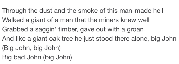 One of my favorite songs as a boy was “Big Bad John” by country/western troubadour Jimmy Dean, especially the line near the end of the song where Big John and a crew of coal miners are trapped deep underground in a mine cave in: