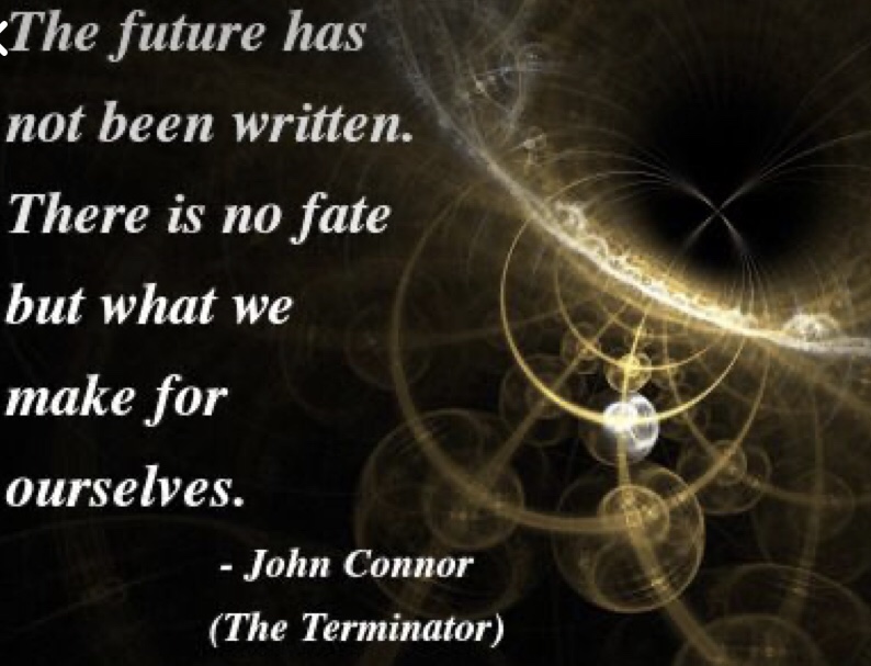 That is a line from the Terminator movie series uttered, I think, first in a deleted scene from the first movie by Sarah Connor, who would later become the mother of the hero of the resistance in the future, John Connor. There have been many twists in the story line, but the central theme has stayed true – “There is no fate, but what we make.”