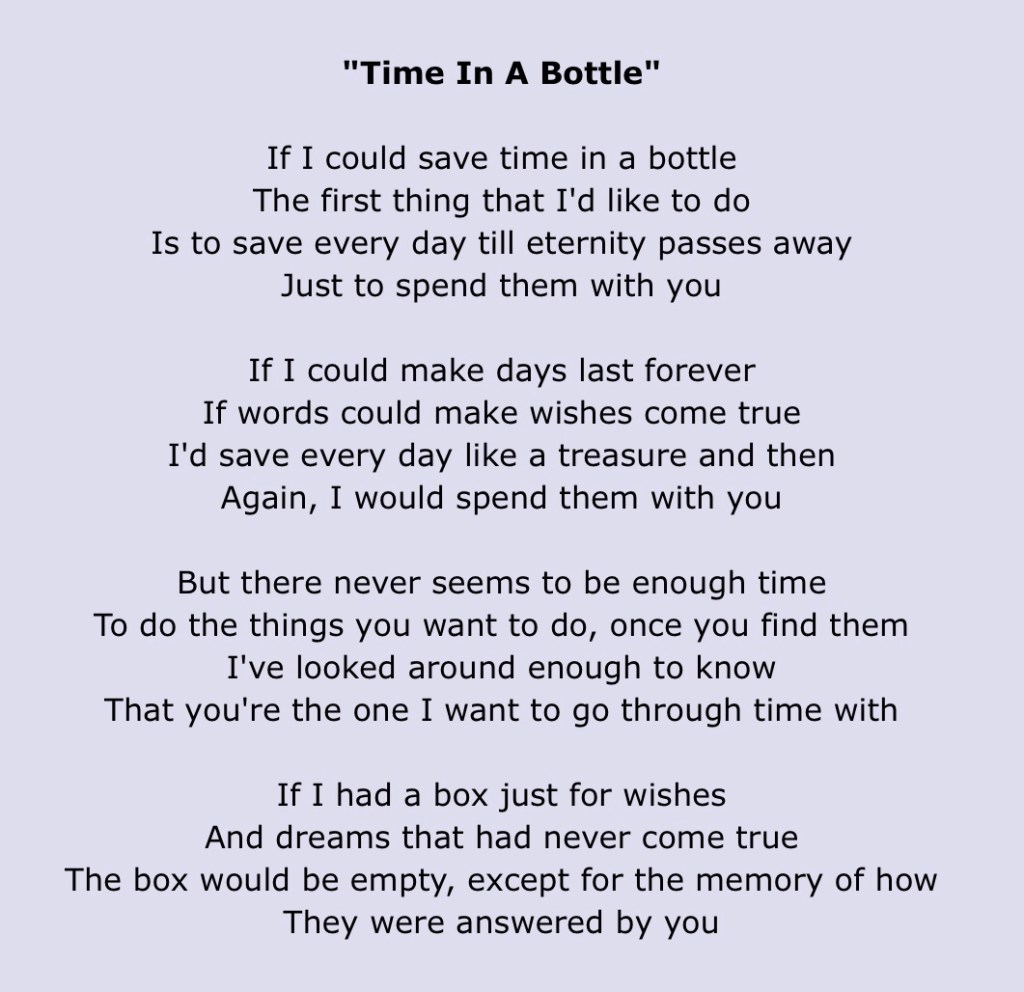 One of my favorite Jim Croce’s songs is Time In A Bottle: