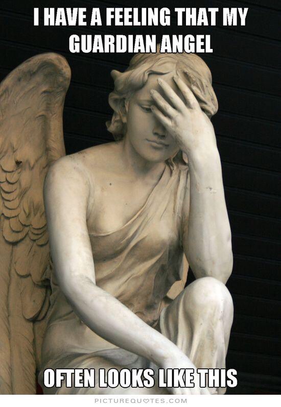 I saw the above quote and immediately twisted it a bit to read “the mind is an adjustable mirror, flex it to see a better world.” A lot of younger and older folks drink and do drugs to help them see the world in a better brighter light, but I have never found that necessary. I admit to having been fortunate to live a sheltered life as one of the Ten Intentions For A Better World that I follow says, “guided, guarded and protected.” But then I believe that we all are at birth assigned a legion of guardian angels not just one to watch over us. If we only had one he/she would look like the attached picture I am sure at times.