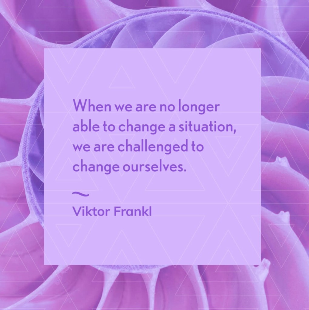 If you had a magic wand and could change anything about your situation what would it be? As the picture quote for today says, “When we are no longer able to change a situation, we are challenged to change ourselves.” A better more loving and beautiful world always begins with “Just a little change, small to say the least…”