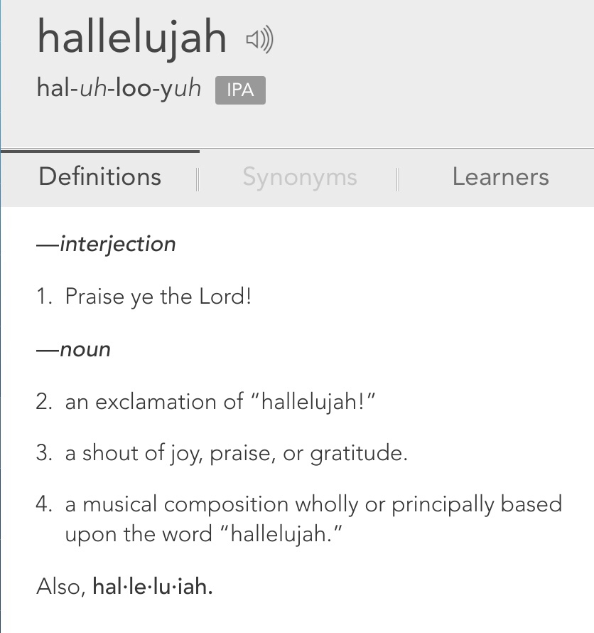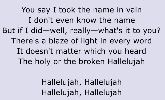 The eternal truth is that it does not matter which you hear, the holy or the broken hallelujah. The dictionary defines hallelujah as: