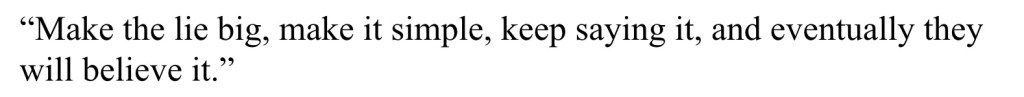 Roy Cohn taught Joseph McCarthy then later, you know who, the importance of the “big lie” in politics. Another famous political liar wrote in his book, Mein Kampf (My Struggle) published before his rise to power:
