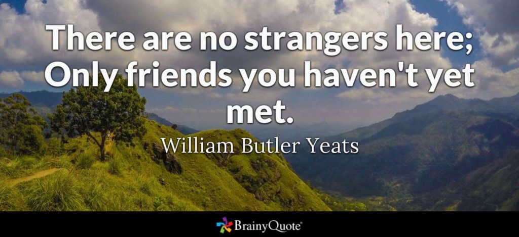 Jesus never met a stranger, only family and friends for that is all there is in this life or any other, past, present, or future.