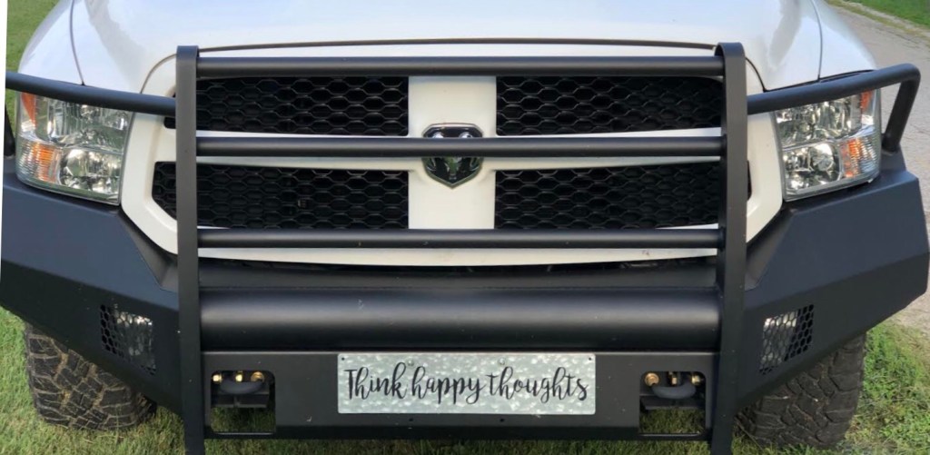 In December just before Christmas I concluded the last of my on the road road work assignments. My last rodeo, so to speak, was six months in Nebraska. Indiana only requires that vehicles have a rear license plate so for most of the almost seven years that I have owned my truck I have had a plate on the front bumper of the truck that reads, “Think Happy Thoughts.” In two weeks I will have to remove that slogan and replace it with a front Texas license plate.