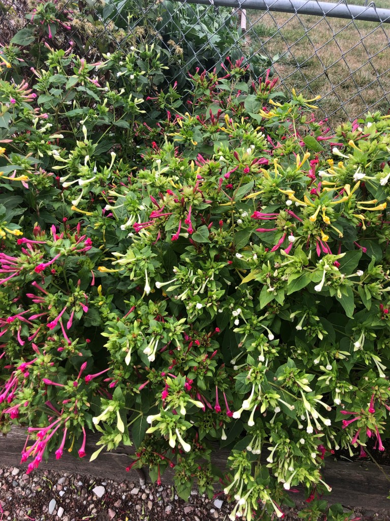 I will miss seeing not snow in the north country, but I will have a lot more opportunities to consider the lilies of the field where I am. I brought back an envelope of four o’clock seeds from Wayne, Nebraska where I saw four different colors blooming together last summer.