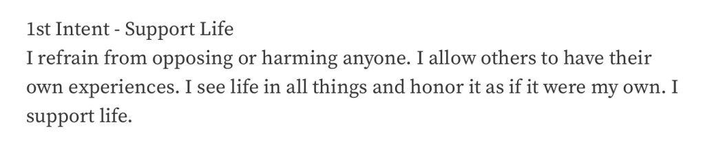 My mind has for over a week now been focused on a battle that my wife has been waging inside her own mind. Trying to make sense in an insane world that is forever trying to press us all into one or the other molds is enough to drive us all crazy. And so I close this offering as I have several and will, if I live, probably end several more, with the First of Ten Intentions for a Better World: