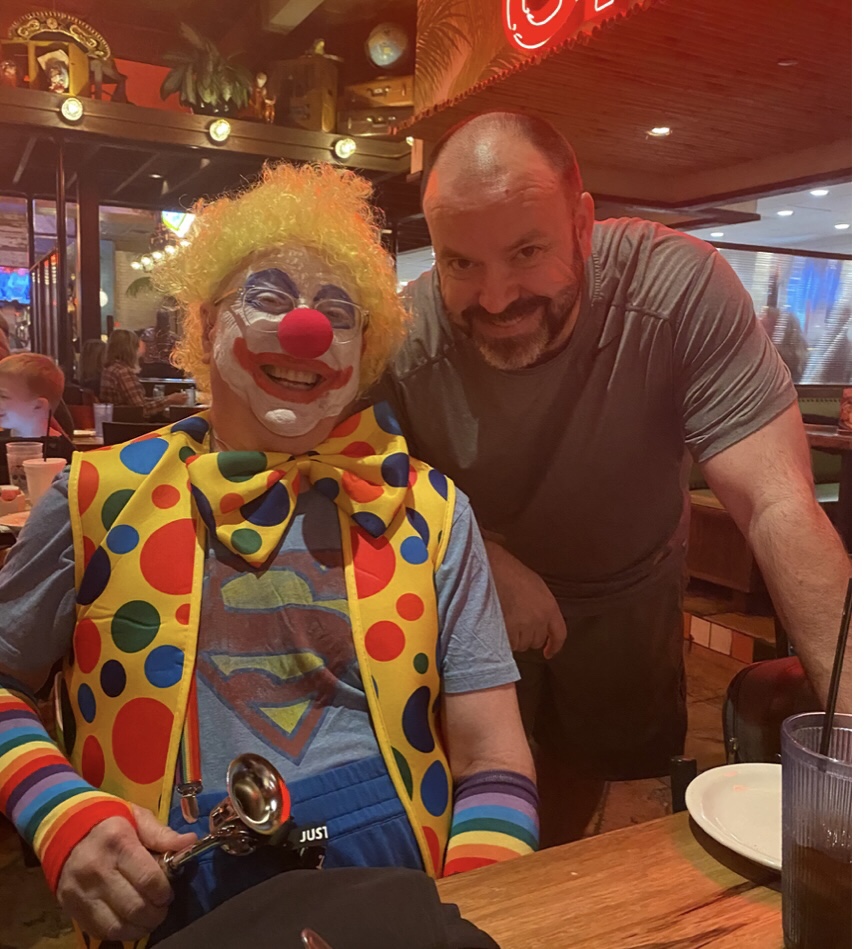 Well, I was the first to arrive for the birthday boys’ dinner and had to wait on our table. I think I was a bit overdressed because everyone was giving me the eye, especially the small fries. Some of the smaller ones were a bit shy at first, but Dee Jay the Clown come out of retirement did not make a single one cry and that is a good night for any happy clown.
