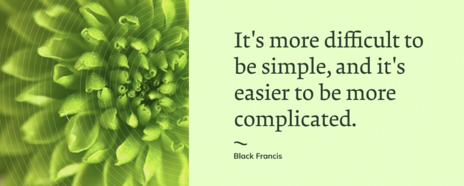 What are you trying to say, wordy Dave? The title says it all (K.I.S.S.) Keep It Simple, Stupid. Three paragraphs and a poem should do the trick.