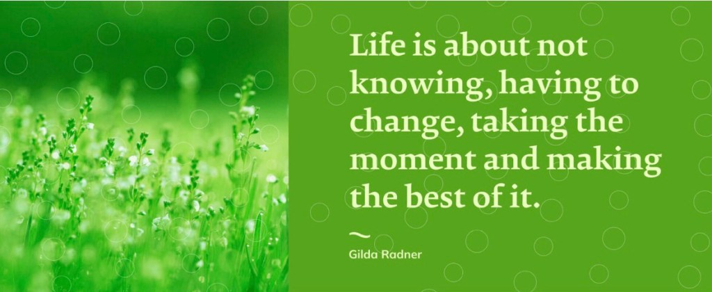 As today’s quote from Gilda Radner says, life is not so much about knowing as it is uncertainty and developing a talent to adjust to the situation we find ourself in and thereby making the best of it. I believe our higher self is ever sending us exactly what we need and want most. Some years ago these words came to me: