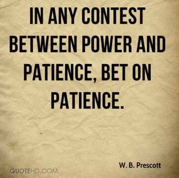 Power may win a few battles, but patience and persistence always wins the the race or the war. Aesop’s famous parable of the tortoise and the hare illustrates this principle as does a song from an Old Testament quote: