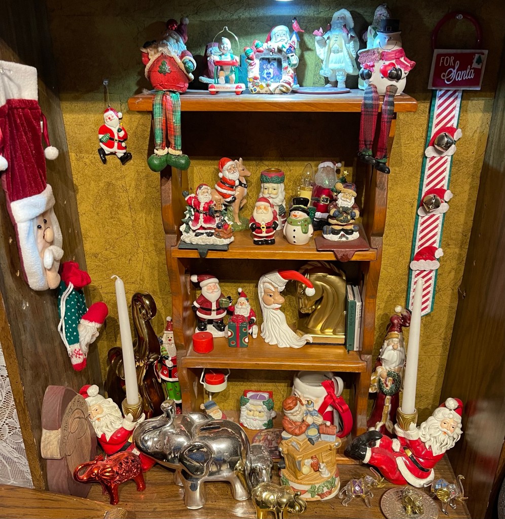 On my last away work assignment before retiring this time last year I was in Nebraska and to pass the time alone when I was not working I frequented the resale shops in the small town of Norfolk, Nebraska, Johnny Carson’s home town, and collected Santa Claus figurines. I have more than enough of them to be able to pick out one for each of the guest who will be at this special Christmas family gathering on Sunday. I am not entirely sure who will make it to the get-together but my version of Mr. Claus was a Boy Scout so he will be prepared with a few extra wrapped little Santa’s that he can write names on if there are extra guests. Santa will quickly empty his sack and no one will complain too much that the jolly ole elf got to hand out his gifts first, after all he will have had a long night’s work prior to this dinner and some allowances will be made for him. I mean not everyone has Santa drop by for Christmas dinner.
