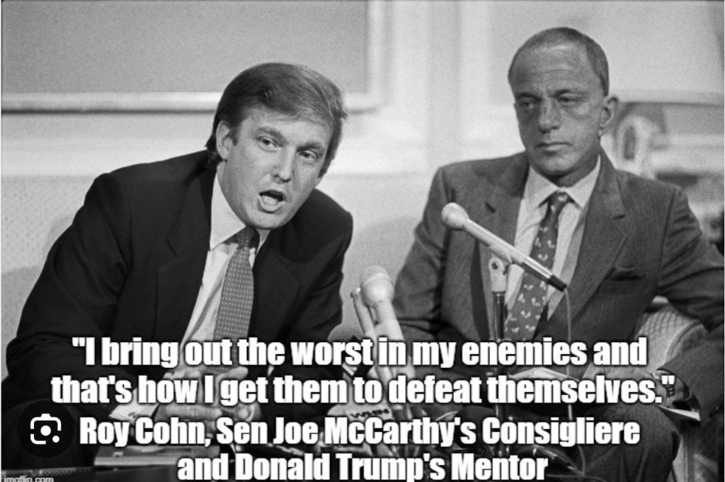 The truth will out, they say, meaning those who make a habit of lying will be found out. Senator Joseph McCarthy lied so many times about having proof in his hand about how many Communists there were in our government that it became a running joke that he could not keep the number straight. McCarthy had a young lawyer whispering advice in his ear Roy Cohn. Later in life Roy Cohn mentored another boy in the art of the deal, Donald John Trump.