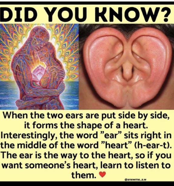 I expect baby Grace has far more to teach me than I have to teach her, therefore I plan to use most of the precious time I hope to have with her just listening. You see even a big talker like me has learned that the best way to learn and to be a good friend is to listen. The shape we most recognize as a heart is really just two listening ears put together.