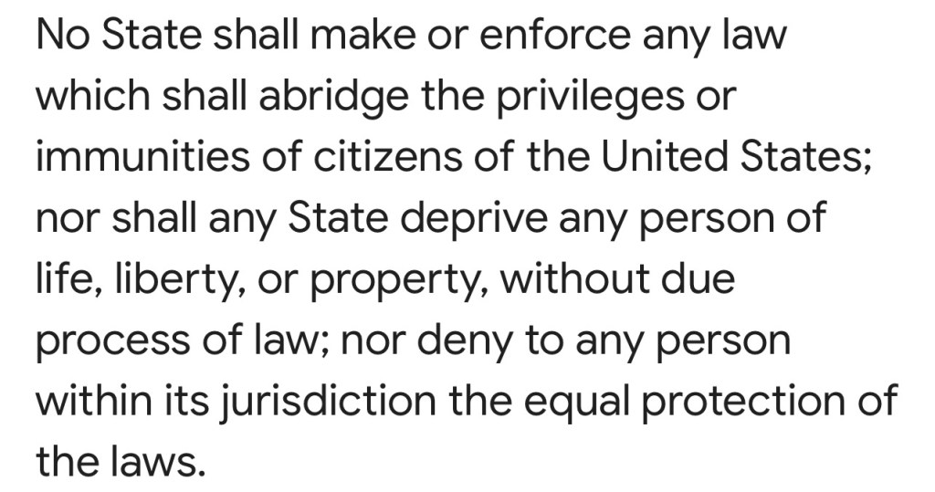 In the Fourteen Amendment are enshrined these words: