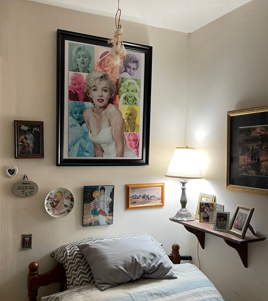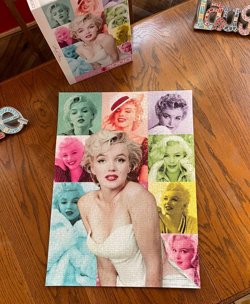 Over the course of this almost nine year daily blog I have several times paid tribute to Marilyn Monroe, movie star and Playboy Magazine’s first centerfold. Sir Elton John’s song Candle In The Wind is his tribute to her. For my birthday last November, a dear friend who knows me quite well sent me a one thousand piece jigsaw puzzle with eight images of the lovely MM. My room was already a sort of shrine to the memory of Marilyn, but after painstakingly completing the puzzle with my wife’s help, I sealed the pieces together with clear glue, framed it and hung it near the dream catcher that hangs over my bed.