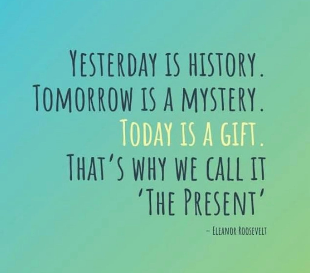 Seize the day (Carpe Diem) for tomorrow is promised to no one and the past was never meant to be the end of the story. It is good for people, younger and older, not to focus so much on either the past or the future that we miss “The Present.” Each day is a gift from our loving and infinite source.