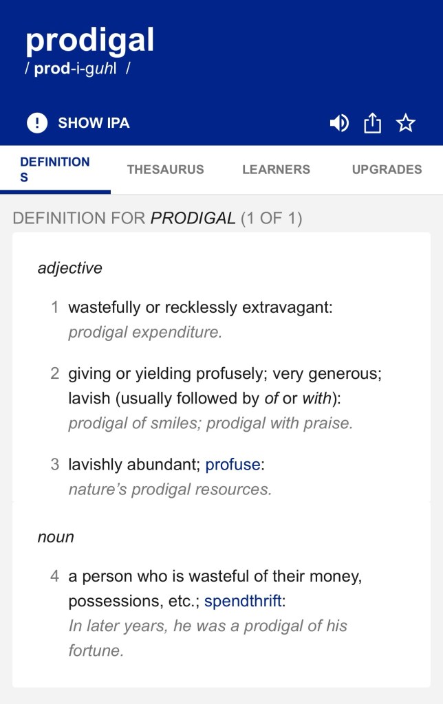 One of Jesus best parables is the story of the prodigal son. The dictionary defines prodigal as: